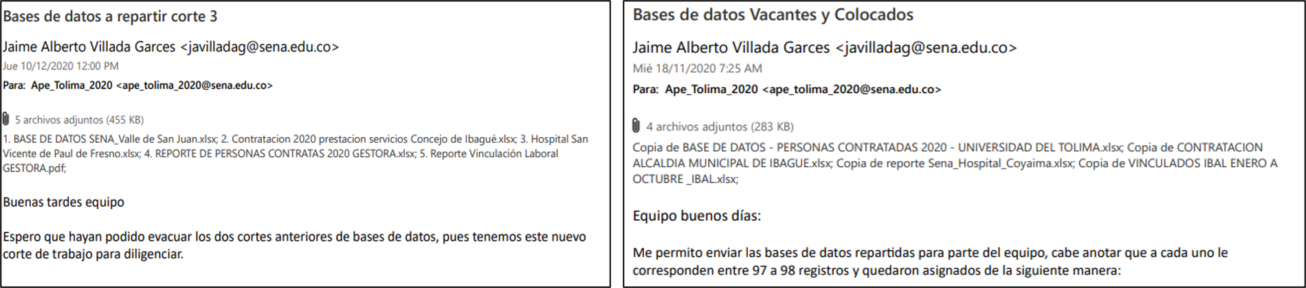 Transcurrido este tiempo, El Cronista.co ha conocido documentos (mensajes de WhatsApp y correos electrónicos) que demostrarían que el ingeniero Villada habría cometido delito de falsedad dentro del trabajo realizado como coordinador Regional de la Agencia Pública de Empleo del Sena, labor que lo habría catapultado para llegar a ser el mejor profesional del Sena en 2020 en la categoría de ‘funcionario de carrera administrativa’. Villada entró a ocupar ese cargo desde el 25 de enero de 2020.