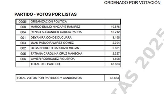 Los 48.663 votos obtenidos por la lista que fue presentada a los tolimenses este domingo y que tenía como finalidad ordenarla de acuerdo con el resultado final, indica un buen presagio para la contienda que se viene con miras a las elecciones para designar nuevo Congreso.