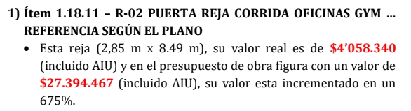 Uno de los aspectos llamativos son los altos costos en algunos elementos que componen las obras de las Piscinas. Una puerta corrediza, que según las veedurías debería costar alrededor de $4 millones, en el presupuesto de obra está avaluada en más de $27 millones. Es decir, cuesta siete veces más.