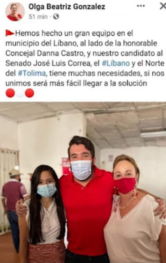 Ante este panorama, Danna Castro no tuvo otra alternativa que pedirle a la campaña de la candidata Olga Beatriz González que retirará una foto de las redes sociales en la que aparece junto a Olga Beatriz y el candidato al senado, el caldense José Luis Correa.