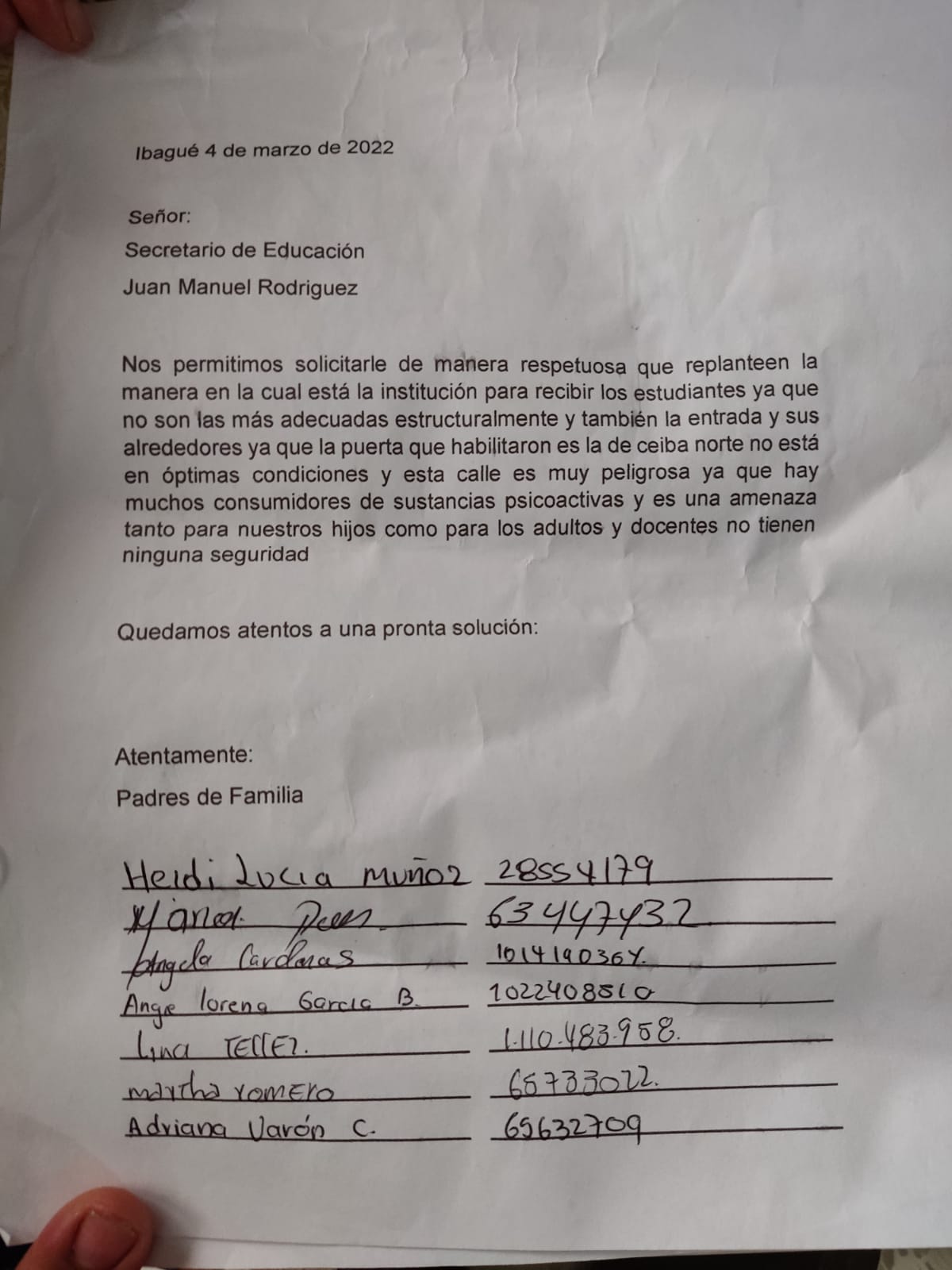Según los padres de familia que dialogaron con El Cronista.co, por las condiciones que presenta el colegio, no era el momento indicado para que los estudiantes retornaran a la presencialidad. Actualmente, están recolectando firmas para solicitarle a la Secretaría de Educación, que se replanteé lo de la presencialidad mientras no se mejoren las condiciones del colegio.