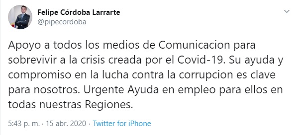 La situación presentada en este sentido, ha hecho que altos funcionarios de organismos de control como el Procurador General de la Nación Fernando Carrillo, y el Contralor General de la República Carlos Felipe Córdoba, se pronuncien sobre el tema a través de de los siguientes twitter: