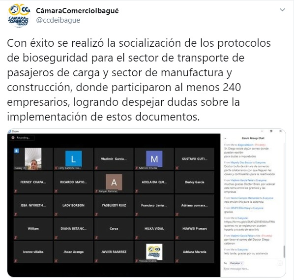 La Cámara de Comercio de Ibagué inicia trabajo sectorial para estructurar protocolos de bioseguridad