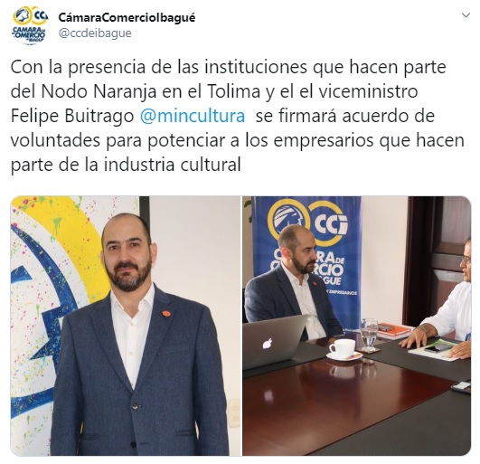 “La firma del acuerdo de voluntades permitirá consolidar el ecosistema de la Economía Naranja en el Tolima”: Felipe Buitrago