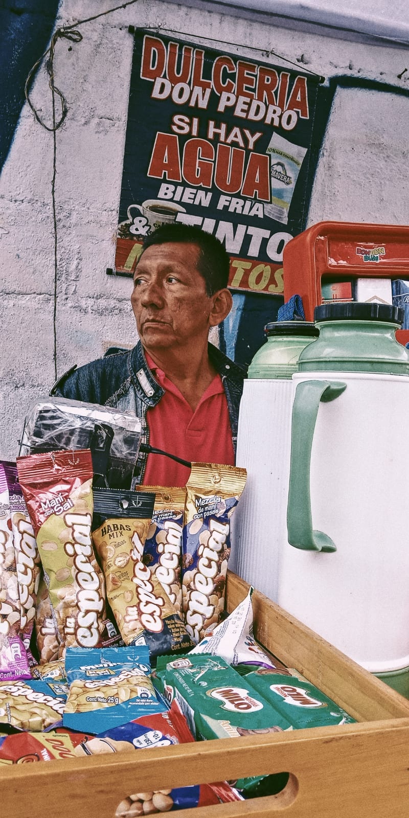 Los días para Pedro han sido un verdadero calvario. Sale todos los días desde hace dos meses a las 6 de la mañana y se ubica afuera de la Universidad para vender sus tintos y una que otra galguería. Su jornada de trabajo termina alrededor de las 11 de la mañana, debido a que después de esta hora ya no hay personas transitando por el sector y no logra vender más de 20 mil pesos en tintos y dulces.