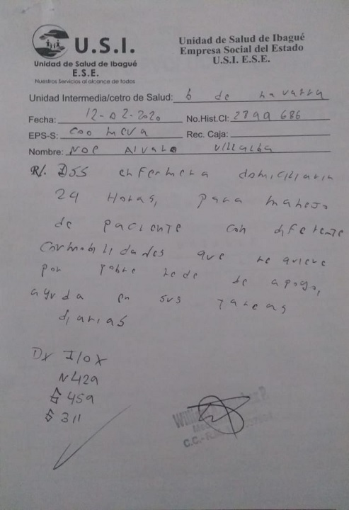 La Alcaldía de Ibagué ya se puso en contacto con la esposa del maestro Villalba para ofrecerle el servicio de enfermería las 24 horas. Por ahora, solo se ha acercado un doctor a chequearlo y se espera que lo antes posible esté el servicio a su disposición.