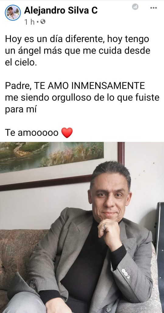 "Padre te amo inmensamente me siento orgulloso de lo que fuiste para mí", remata Alejandro en su mensaje de despedida.