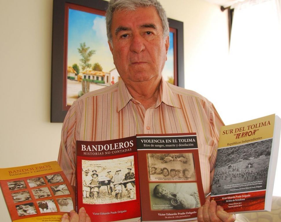 Dicen que Víctor Prado Delgado se caminó toda la Cordillera Central del Tolima, pescándole imágenes a la violencia. Y no solo le mostró las imágenes, sino que después de muchos años empezó escribir libros en los que pretendía dejar huella de los que vio. De ello quedaron 9 libros, y uno más que estaba próximo a ser publicado sobre su propia vida.