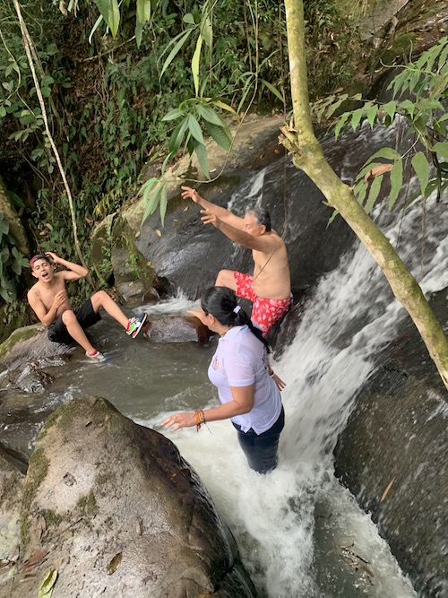 En su finca hay una cascada, su agua es fría, pero desde allá en un mediano plazo se hará torrentismo. Inició escuchando a los jóvenes de Mondomo que visitaron su finca para ser parte del inventario turístico de Santander de Quilichao. Les prefguntó dos veces que era la señalética y cuando volvieron encontraron que en pedazos de guadua todo tenia nombre, punto de encuentro.