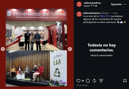 Profesor, Jhon Jairo Méndez participando de las actividades de la FILBO. Fuente Instagram: @editorialutolima