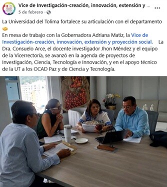 En la página de Facebook de la Vicerrectoría de Investigación, Creación, Proyección y Extensión se ve abiertamente al profesor Méndez sentado en una mesa, con cercanía a la gobernadora, hablando sobre las posibilidades y proyectos para la universidad”, afirmó.