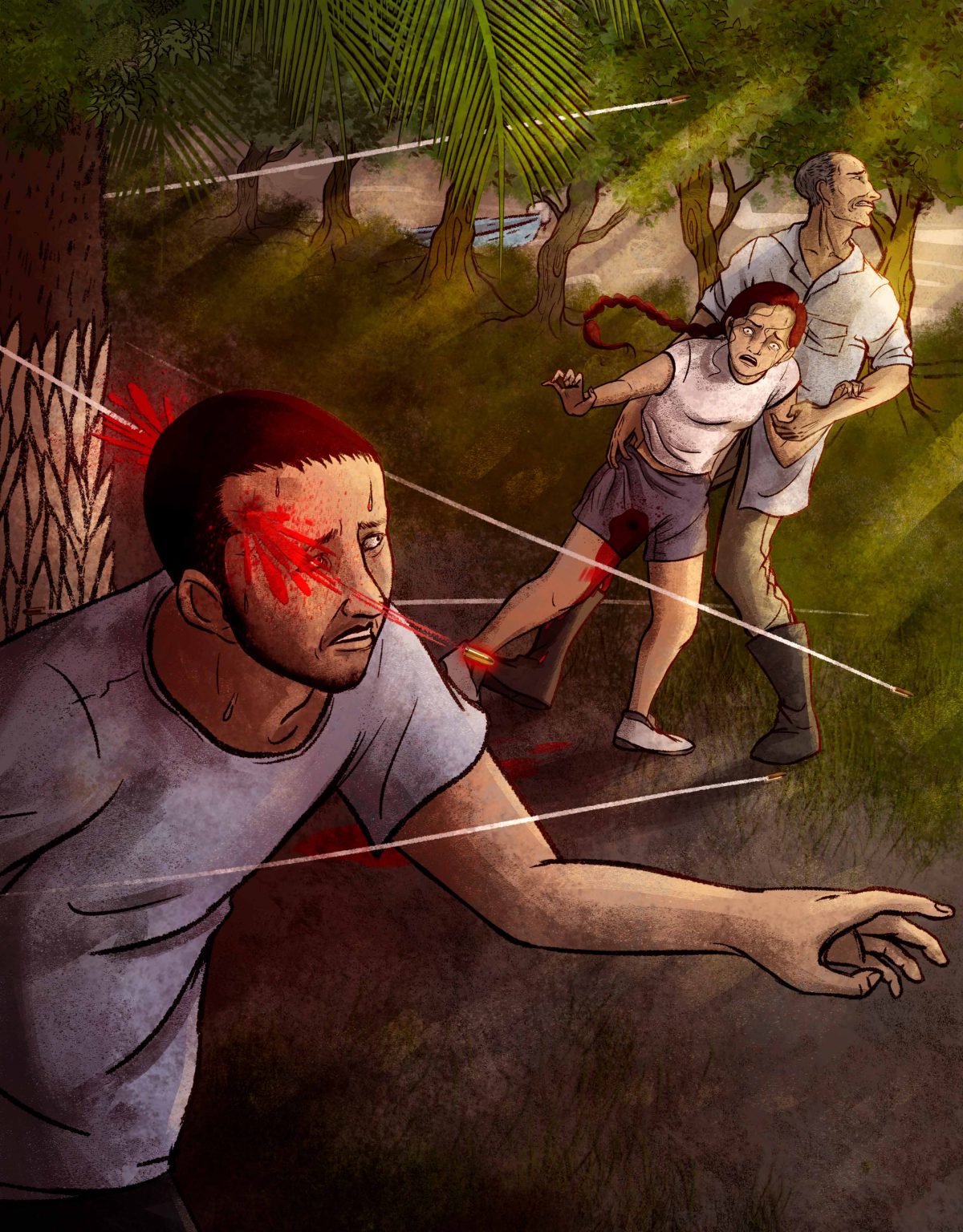 El problema es que alrededor llovían las balas y no se sabía hasta ese momento de dónde venían. Mujeres, niños, hombres, todos corrían de un lado al otro intentando resguardarse. El mismo Divier había estado con Ana María escondido detrás de una enorme palmera cuando la bala la alcanzó. Y fue entonces que El Pájaro llevó a Ana María hasta la orilla del río.
