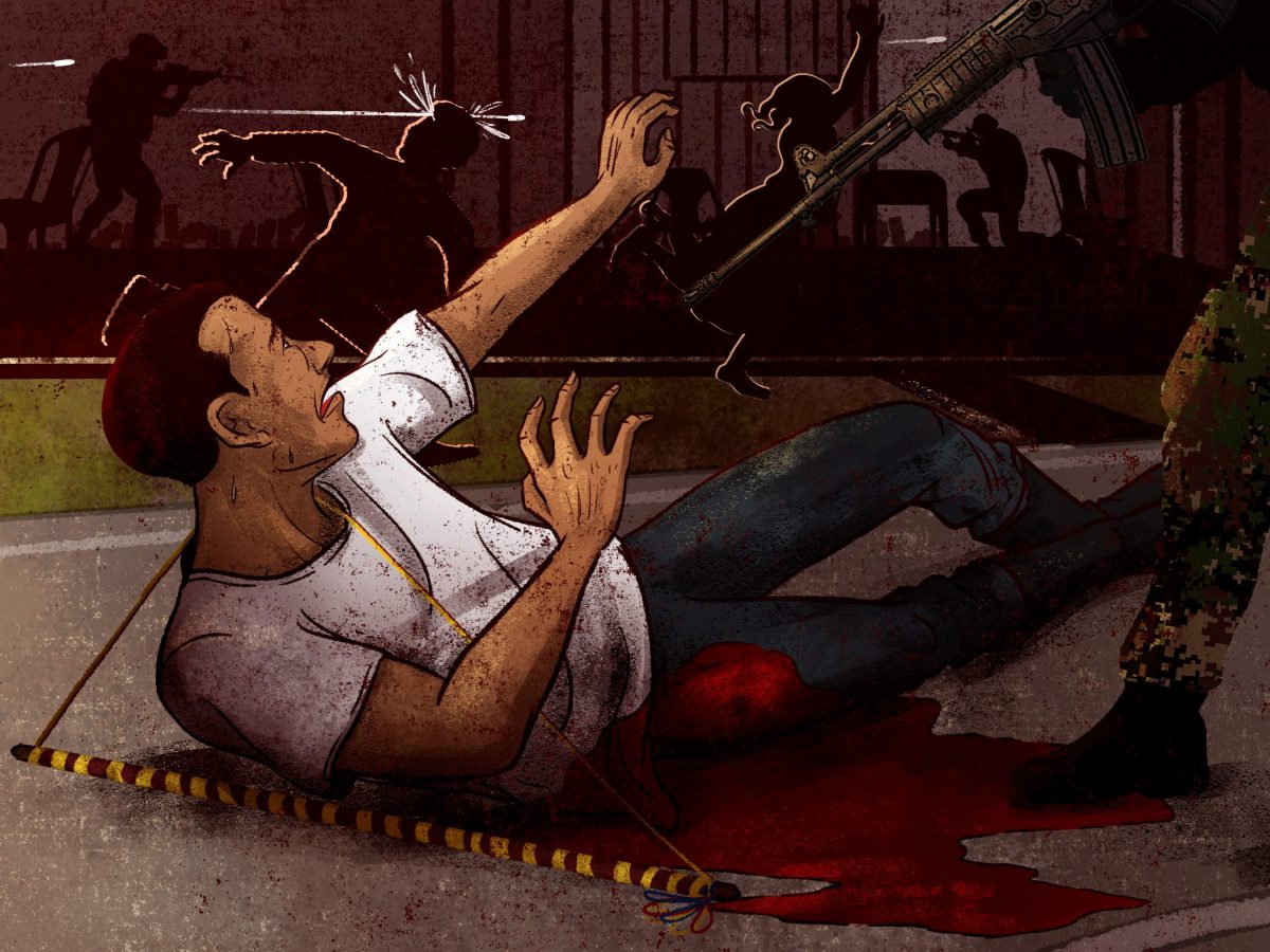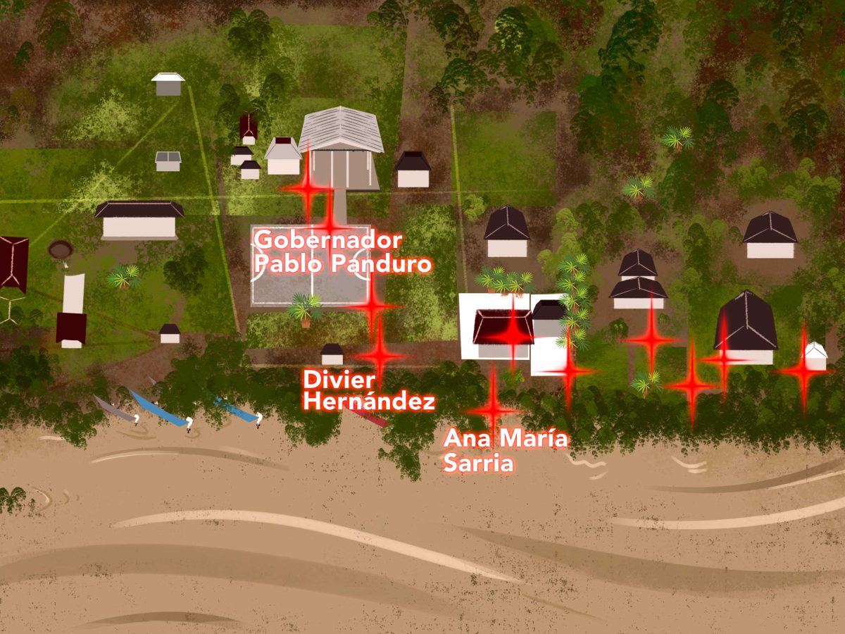 Entre las 6:30 de la mañana y las 7:00, Divier estaba explicándole a un nuevo grupo de mujeres dónde estaba la comida, qué quedaba por vender, qué faltaba por preparar, qué había que hacer. Y se escuchó un primer disparo cuyo estruendo provino desde la montaña, justo detrás de la cocina.