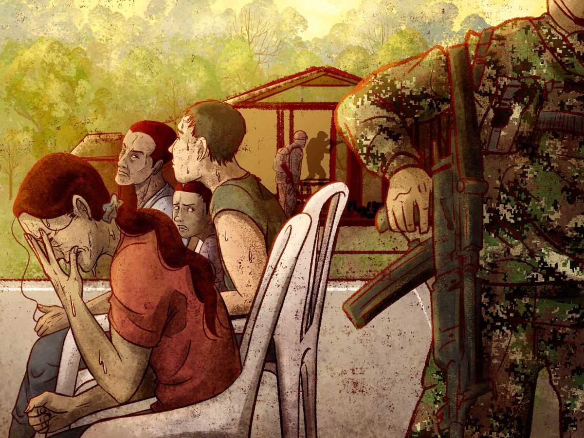 Varios testimonios que recogimos en la zona indicarían que en el bazar habrían estado al menos cinco hombres armados de las disidencias de las Farc mezclados con la comunidad. Es el paisaje de innumerables rincones del país donde no hay Estado y donde las comunidades han vivido históricamente a merced de los grupos armados ilegales. Si un hombre con un fusil terciado a la espalda llega a pedir comida o bebida, pues hay que darle. ¿O qué otra opción tiene un civil desarmado?