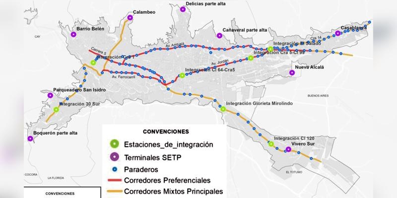 El SETP contaría con 30 rutas estructurantes, quince alimentadoras y cinco de última milla alimentadas por tricimóviles. A lo largo del trayecto se dispondrán 268 paraderos. Para el carril preferencial se destinarán 22 kilómetros. Además, habrá nueve patios – talleres.