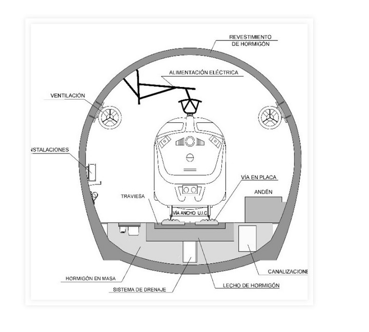 Tramo con doble túnel (12 km.) y estación de seguridad.