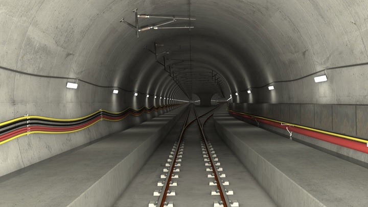 Túnel de base para vía única: 44,2 + 8 km.
