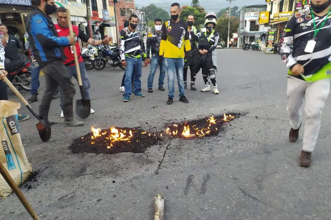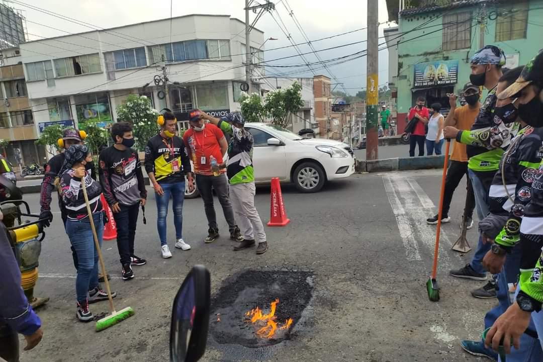 Los motociclistas de Ibagué se cansaron de tener la malla vial de la ciudad en pésimo estado. Ya no piensan esperar a que las administraciones de turno se encarguen del trabajo que les corresponde y, empezaron a tapar los huecos más grandes que hay en las principales vías.