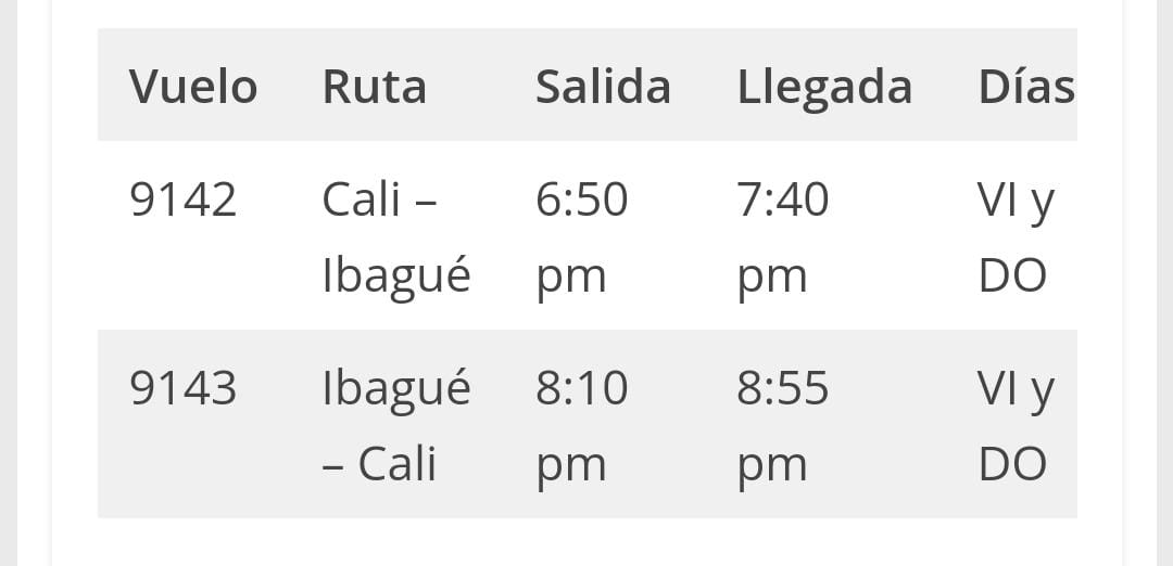 Aquí los horarios de los vuelos que habrá entre las capitales del Tolima y Valle del Cauca:
