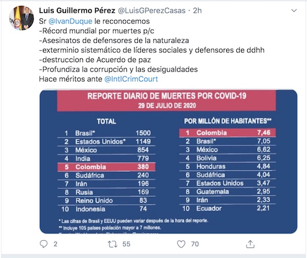 La ONG británica, Global Witness, que hace 25 años lleva a cabo campañas pioneras contra los conflictos y la corrupción relacionados con los recursos naturales, así como contra las violaciones de los derechos ambientales y los derechos humanos en el mundo, acaba de entregar un desalentador resultado, donde Colombia sale pésimamente mal librada.