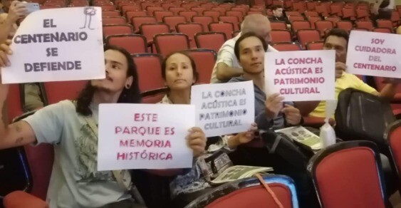 El evento llevado a cabo en el Teatro Tolima, contó con la intervención de un sector cultural local inconforme, allí hicieron presencia artistas, gestores, consejeros y veedores de la cultura y el patrimonio, los cuales se ubicaron en la entrada del teatro, con letreros en los que se podía leer: “El centenario se defiende” “la concha acústica es patrimonio cultural” o “Soy cuidador@ del Centenario”, estos fueron algunos de los carteles y consignas de esta colectividad denominada “Red de Cuidadores del Parque Centenario y la Concha Acústica Garzón y Collazos”.