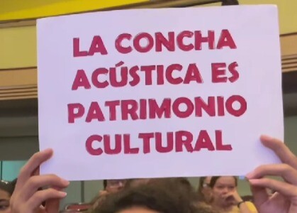 En medio del discurso de la ministra Yannai Kadamani y cuando estaba concluyendo, indicó precisamente el tema de los patrimonios culturales, haciendo alusión a esta manifestación que se llevaba a cabo, momento en que los carteles de los artistas y gestores se levantaron.