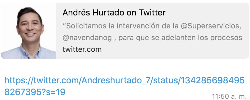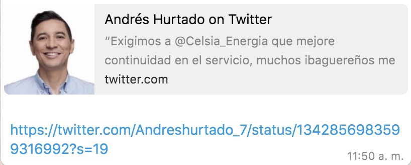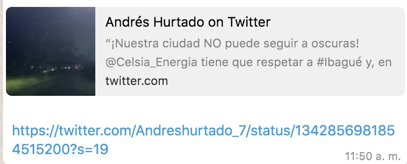 A través de su cuenta de Twitter, el alcalde Andrés Hurtado se pronunció sobre los constantes cortes de luz que se han presentando en Ibagué durante los últimos días, especialmente en la noche de Navidad.