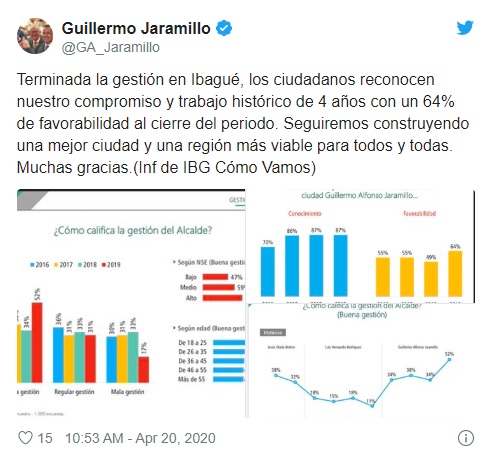 Esta cifra alcanzada por Guillermo Alfonso Jaramillo indiscutiblemente le debe generar un esfuerzo mayor a la actual administración, pues tendrá que fortalecer el trabajo en sectores donde de acuerdo al estudio de Ibagué Cómo Vamos la vara quedó alta y redoblar esfuerzos, donde los números fueron bajos, como en seguridad.
