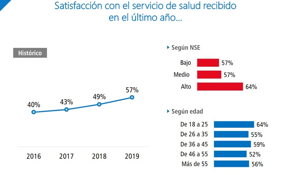 Al comenzar el gobierno de Jaramillo solo el 40% de la gente confiaba en el sistema de salud, lo que cambió para 2019, pues la curva se elevó hasta un 57%. Sin embargo, esto ocurrió con mayor énfasis en los estratos más altos.