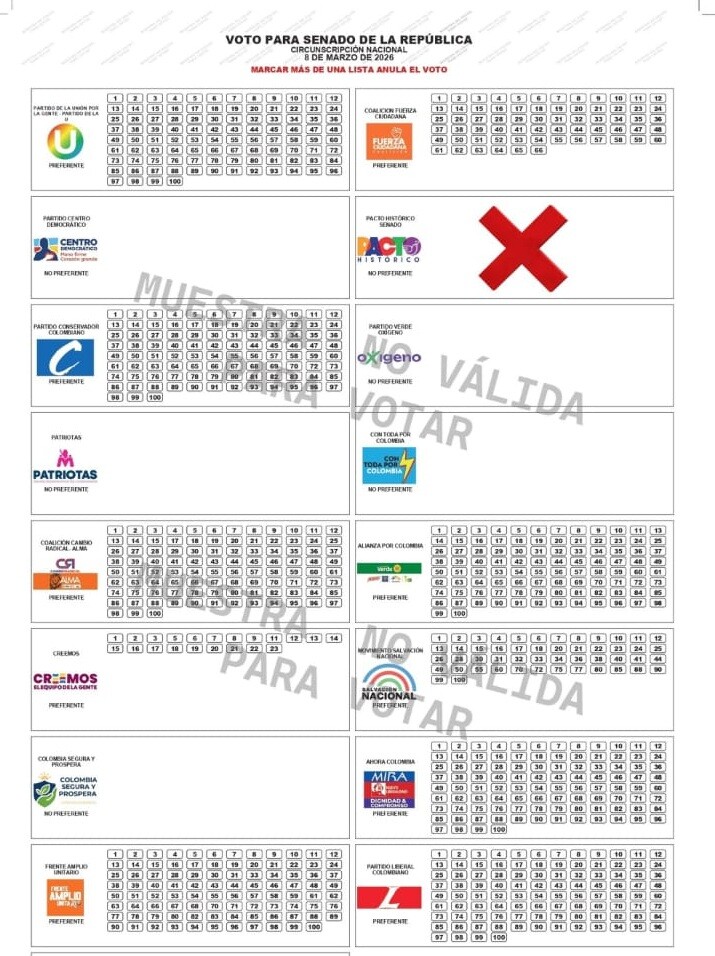 Listo el tarjetón de Senado para las elecciones de 2026