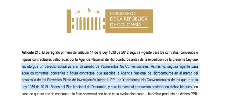 Según el representante César Pachón, quien votó a favor de eliminar el artículo 210, el 'mico' permite que "en el fracking paguen el 60% de lo que paga hoy la industria petrolera convencional. Ya lo que pagan las industrias petroleras es poco, del 8%, y ahora les van a reducir el 40%. Las regalías son para reparar los daños ambientales que ocasiona la explotación no convencional, y con este descuento será nula la posibilidad de revertir este impacto".
