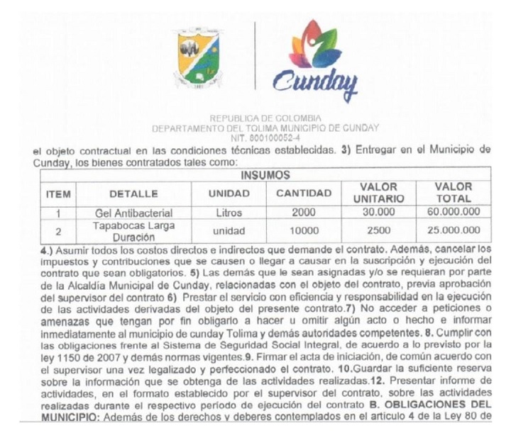 El Cronista.co publicó al inicio de la pandemia un completo informe que alertaba de presuntos sobrecostos en contratos del covid-19, en varios municipios del Tolima. Entre ellos Cunday.