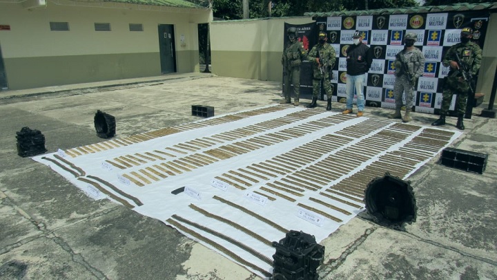 Este material de guerra fue puesto a disposición por la Fiscalía 164 por los delitos de concierto para delinquir, fabricación, tráfico o porte de armas de fuego y municiones de uso privativo de las FFMM.