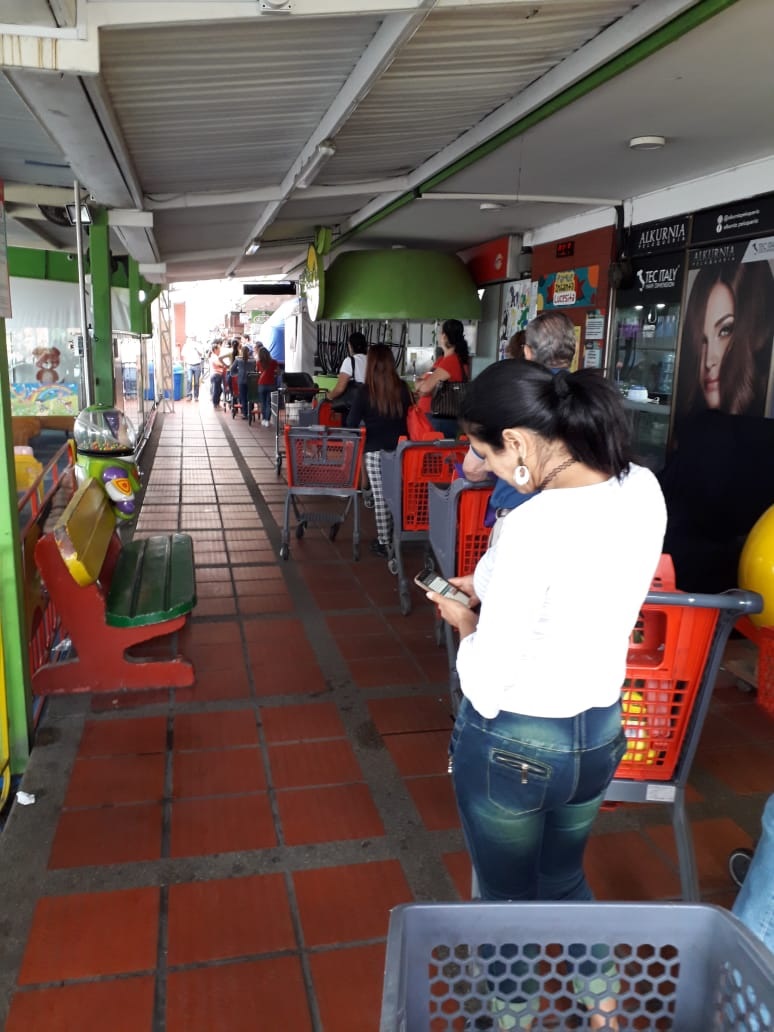 Desde las primeras horas de la mañana de este miércoles 18 de marzo, se observan largas colas en algunos supermercados, como Mercacentro en este caso.