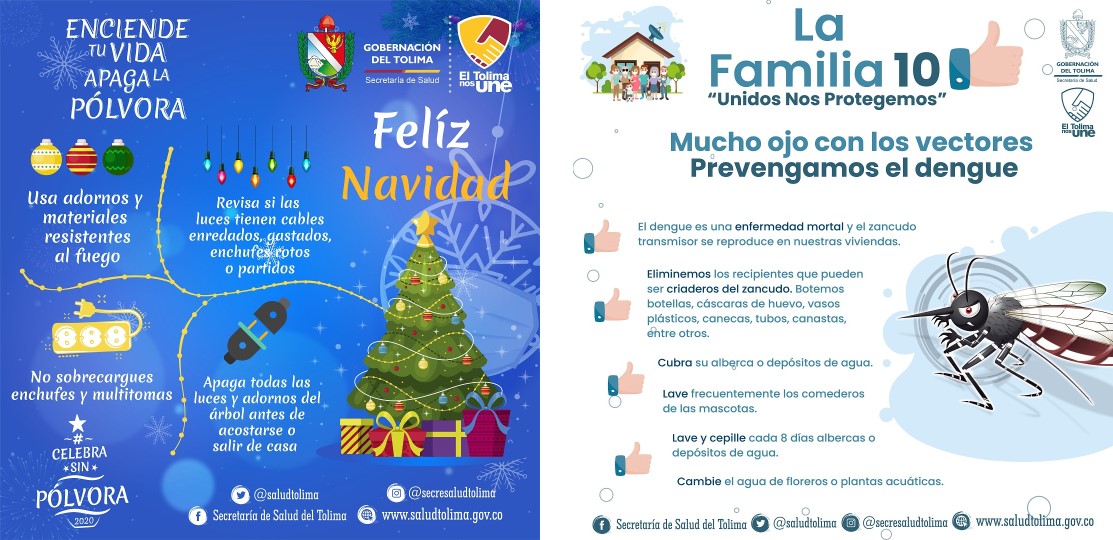 El departamento de Policía Tolima invita a la comunidad a vivir estas fiestas de Navidad y Año Nuevo con el lema de esta campaña y otros lemas que saldrán en los próximos días, donde se entregarán las siguientes recomendaciones para que usted y su familia vivan esta temporada de forma alegre y segura.