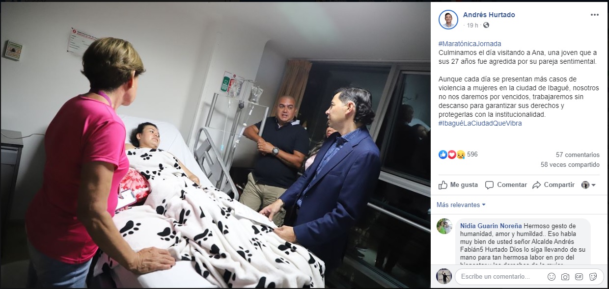 "Atendimos un caso a las 4:00 de la tarde, de una mujer de 27 años, quien fue agredida por su pareja sentimental. El primero de enero en el municipio de Alvarado, fue remitida a la Clínica Ibagué puesto que presentando agresiones en el cuello, en la cara y una fractura en la clavícula", dijo Johana Aranda titular de la cartera.