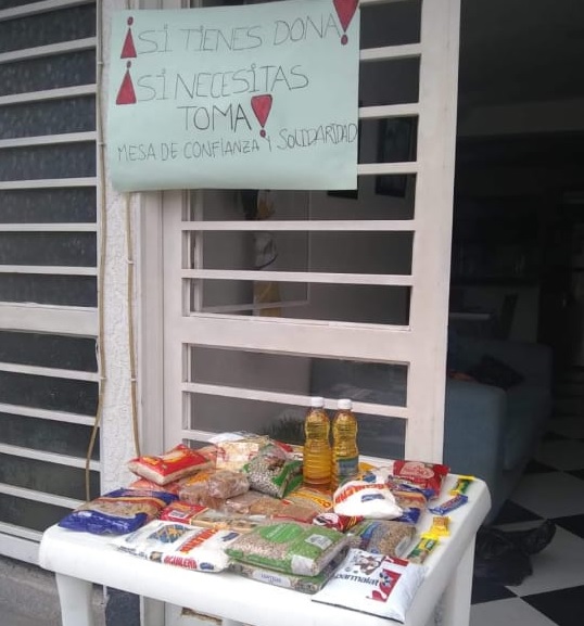 Por su parte Julián Rozo cuenta que la idea de la 'mesa de la solidaridad', surgió de un sobrino que vive en Medellín, quien en días pasados vio en un conjunto residencial una mesa donde algunos donaban mercados y otros los retiraban por artículos, de acuerdo a lo que necesitaban para el sustento del día.