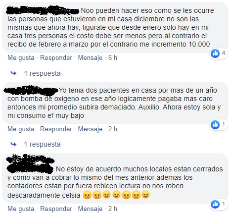 Para Luz Amparo Sánchez esta situación es inconcebible “no pueden hacer eso, cómo se les ocurre. Las personas que estuvieron en mi casa en diciembre no son las mismas que ahora hay. Figurate que desde enero solo hay tres personas, el costo debe ser menor, pero por el contrario el recibo de febrero incrementó en 10 mil pesos”.