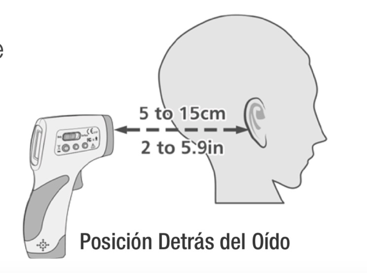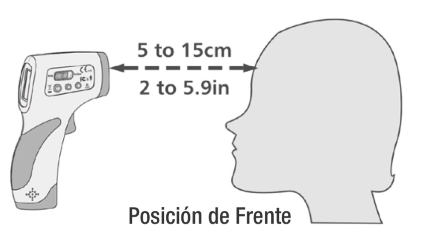 Para tomar la temperatura puede hacerse en la frente o detrás del oído. Pero tenga cuidado al momento de poner en la frente este aparato. Asegúrese que no este cerca de los ojos. La exactitud de las mediciones puede ser afectada cuando la frente está cubierta de cabello, transpiración o ropa.