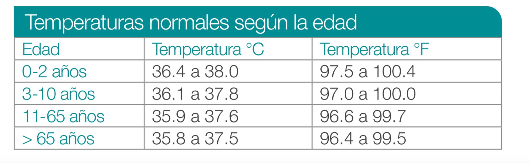 La temperatura de las personas de acuerdo a la edad es la siguiente: