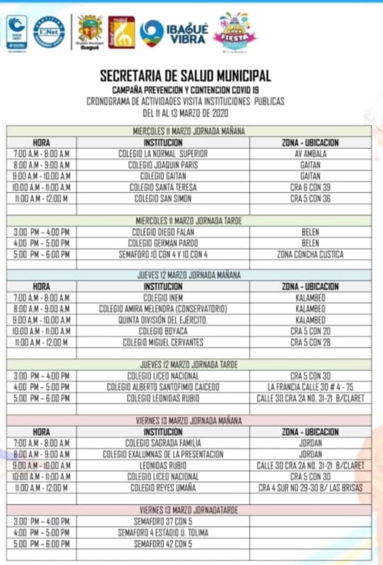 La campaña de prevención, manejo y control de la infección respiratoria aguda, por el nuevo coronavirus, está dirigida en especial a rectores de las instituciones públicas y privadas de Ibagué.