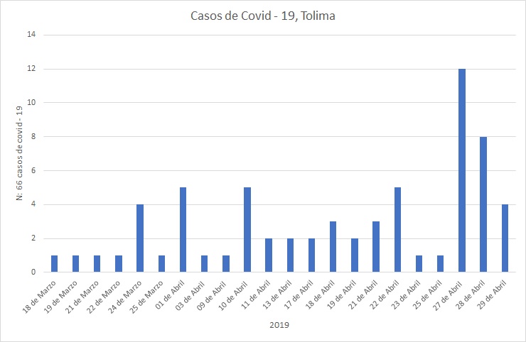 Así pues, el departamento del Tolima llega a 66 casos confirmados por el INS.