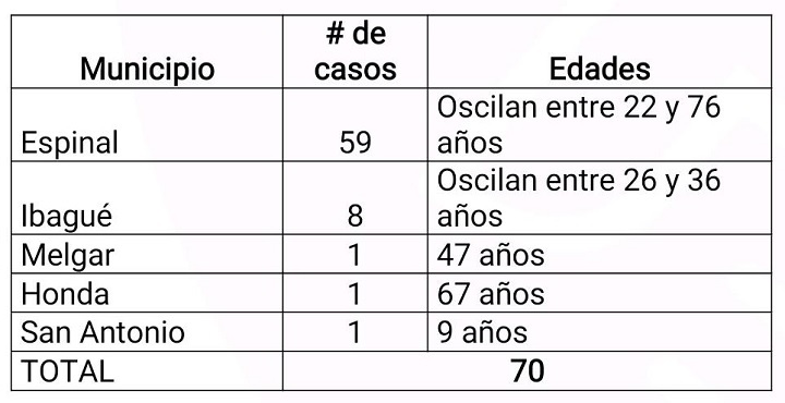 El acumulado y la distribución de todos los casos reportados en 19 municipios del Tolima
