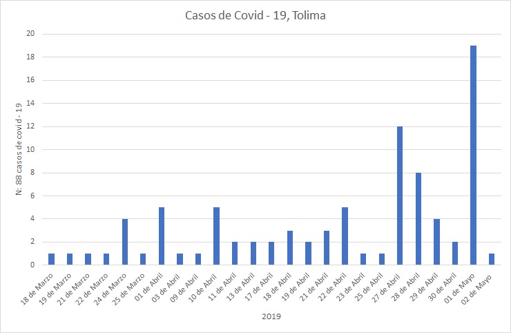 De esta manera, en el territorio tolimense ya se han confirmado 88 casos de coronavirus. Uno más que ayer, cuando se reportaron 19 en un mismo día. Por ahora el virus ha cobrado tres vidas en el Tolima.