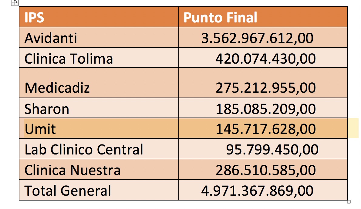 Más de 30 mil millones de pesos del año 2018, auditados y reconocidos para pagar en el Acuerdo de Punto Final, son los que reclaman en la actualidad las IPS Clínica Tolima, Avidanti, Medicadiz, Sharon, Umit y Unicat, instituciones que han hechos grandes esfuerzos para poder afrontar la atención de pacientes con Covid19 como lo vienen haciendo hasta el momento.