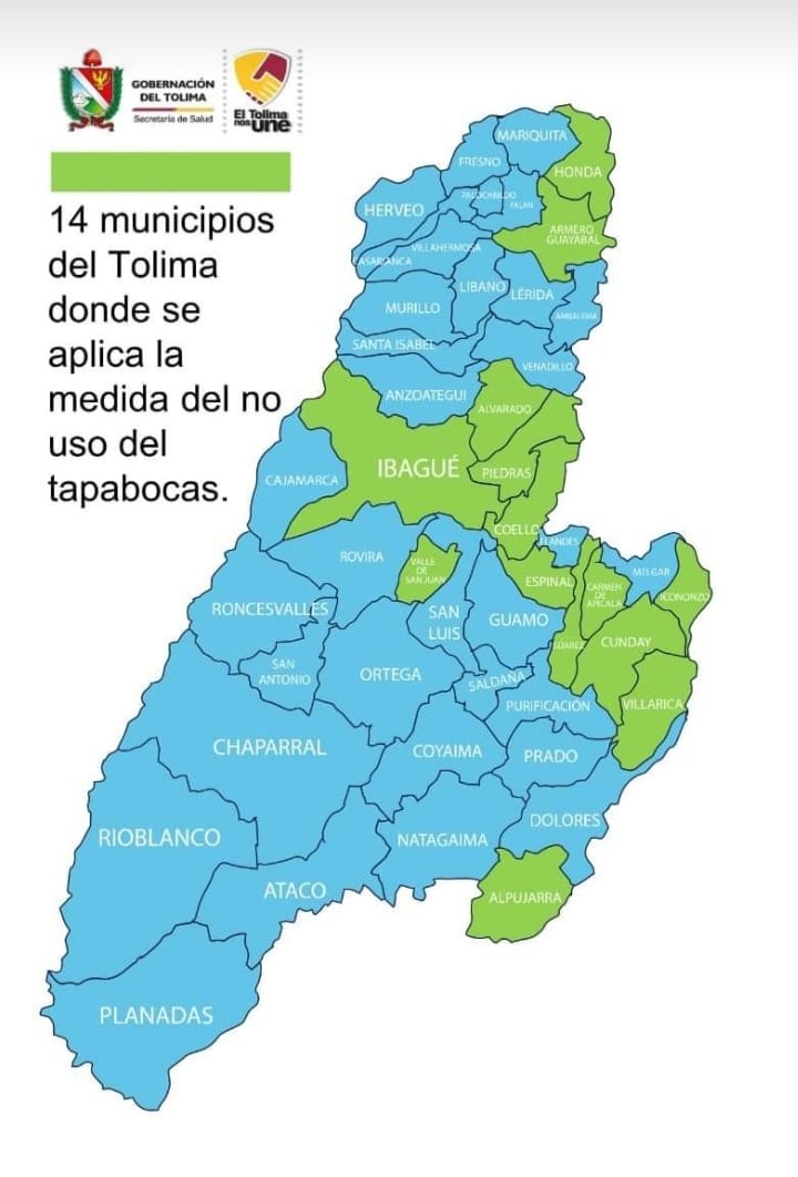 Los 14 municipios del Tolima donde ya no es obligatorio el uso del tapabocas