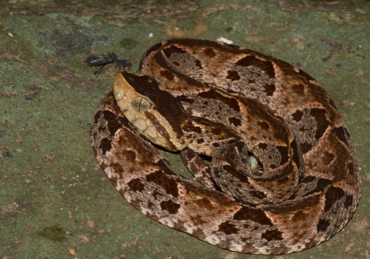 Esta serpiente de nombre científico “Bothrops Asper” es una crotalina venenosa que habita en nuestro departamento. Mide ente 1.4 a 2.5 metros de longitud. Tiene una cabeza es triangular (que identifica su peligrosidad), su cuerpo es de color café con una serie de manchas oscuras laterales en forma de triangulo bordeadas por una o dos líneas de escamas de color blanco.