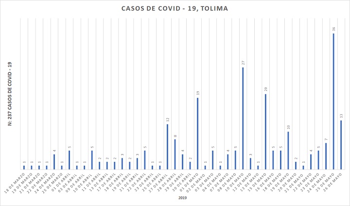 El Ministerio de Salud y Protección Social confirmó 13 nuevos casos por covid-19 para el Tolima, que suma un total de 237 casos de personas infectadas, de acuerdo con el reporte de hoy.
