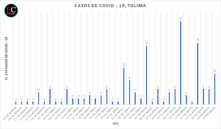 En ese orden de ideas, el departamento llega a 174 casos de coronavirus confirmados. Los diez casos más recientes se encuentran en Ibagué, Flandes y el Líbano.