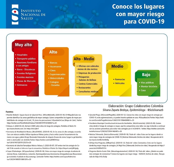 En primera instancia, entre los lugares más peligrosos para contagiarse, figuran los hospitales, el transporte público, reuniones familiares o con amigos, bares y discotecas, plazas de mercado, eventos religiosos y gimnasios.